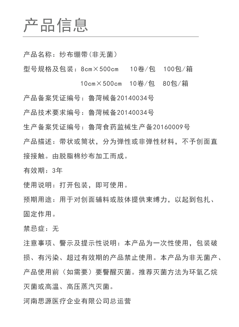 產品名稱:紗布繃帶(非無菌)