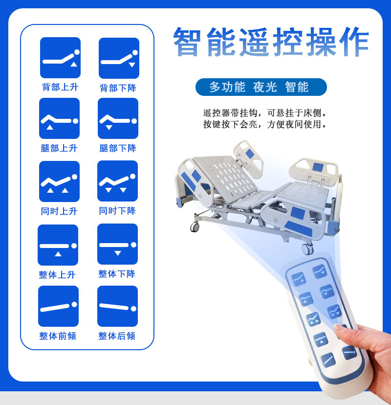具有常規(guī)護(hù)理翻身功能:起背、抬腿、左側(cè)翻身、右側(cè)翻身讓失能老人躺在床上自主翻身,更舒適方便,大小便能自主解決,避免尷尬。