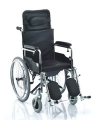 鋼管車架、軟座、高靠背、坐便型,半躺護理型輪椅,承重100KG,